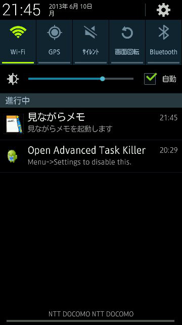 アプリを起動すると、ステータスバー(ホーム画面の最上部にある横長の帯状の部分)に、「見ながらメモ」のアイコンが表示されます。この通知バーを下方向にフリック(画面をなぞる操作)すると、通知領域が表示されます。通知領域の「見ながらメモ」をタップすると、メモが起動します。半透明で小さいサイズなので、後ろになった画面を隠してしまうこともなく、そのまま確認できます。メモ画面をタップして、文字を入力してメモを取りましょう。「見ながらメモ」を操作している間は、その下のアプリ画面を操作することはできませんので、メモしたい画面を表示させてから、「見ながらメモ」を起動してくださいね。後ろのアプリを触りながらメモを取りたい場合は、『浮遊モジュール』をご利用ください。『浮遊モジュール』などの各種拡張モジュールはアプリ内で購入できます。(『ウィンドウのサイズ変更モジュール』定価157円・『浮遊モジュール』定価299円・『透過度変更モジュール』定価157円)