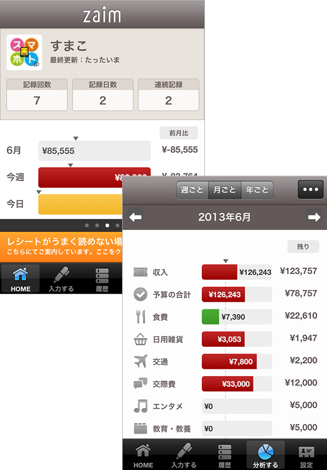 レシート読取機能付き!無料で簡単家計簿アプリ「zaim」