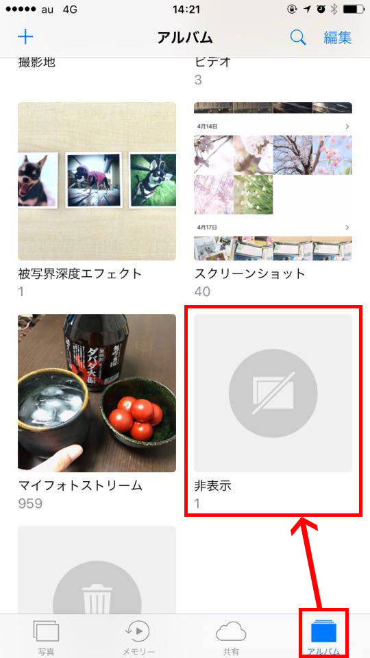 非表示にしている写真は「非表示」フォルダにまとめられるので、探す手間はありません。