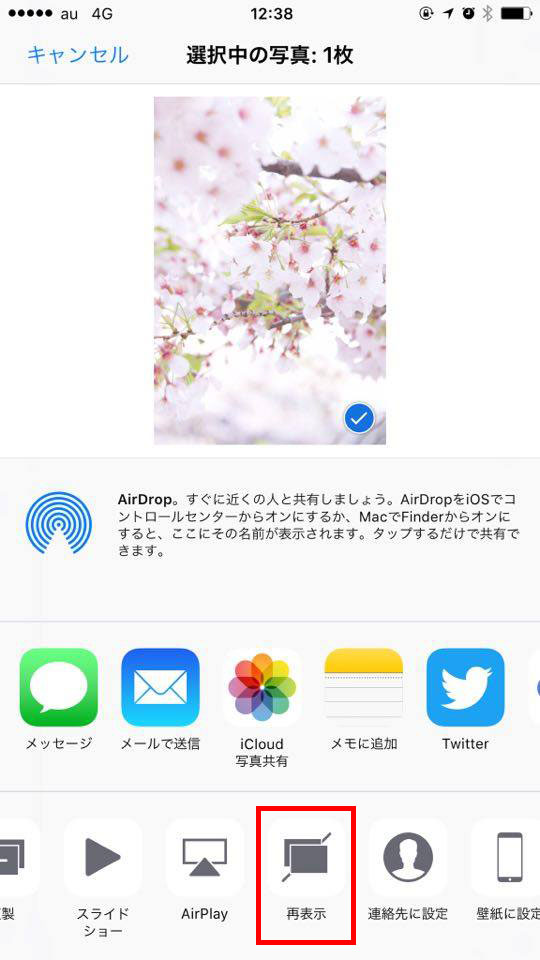 再び表示させたい時は、「アルバム」タブで非表示にしている写真を選択し、メニューから「再表示」を選べば完了です。