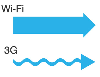3Gや4Gと呼ばれる携帯電話の電波は、繋がる範囲はものすごく広いです。その反面、通信速度はWi-Fiと比べるとやや遅め。