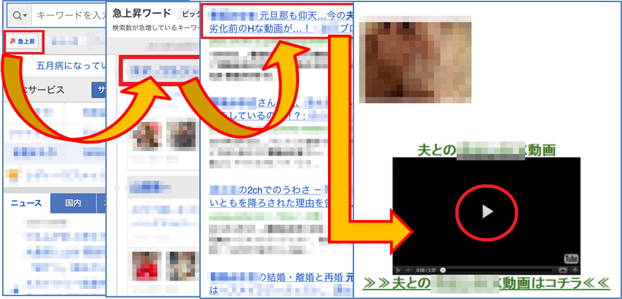 もっとも多い事例は、インターネット上の動画を閲覧しようとして再生ボタンを押すと、「お使いのスマートフォンの端末情報を取得しました」や「会員登録を完了しました」などのメッセージが現れ、高額な請求画面が表示されるというもの。