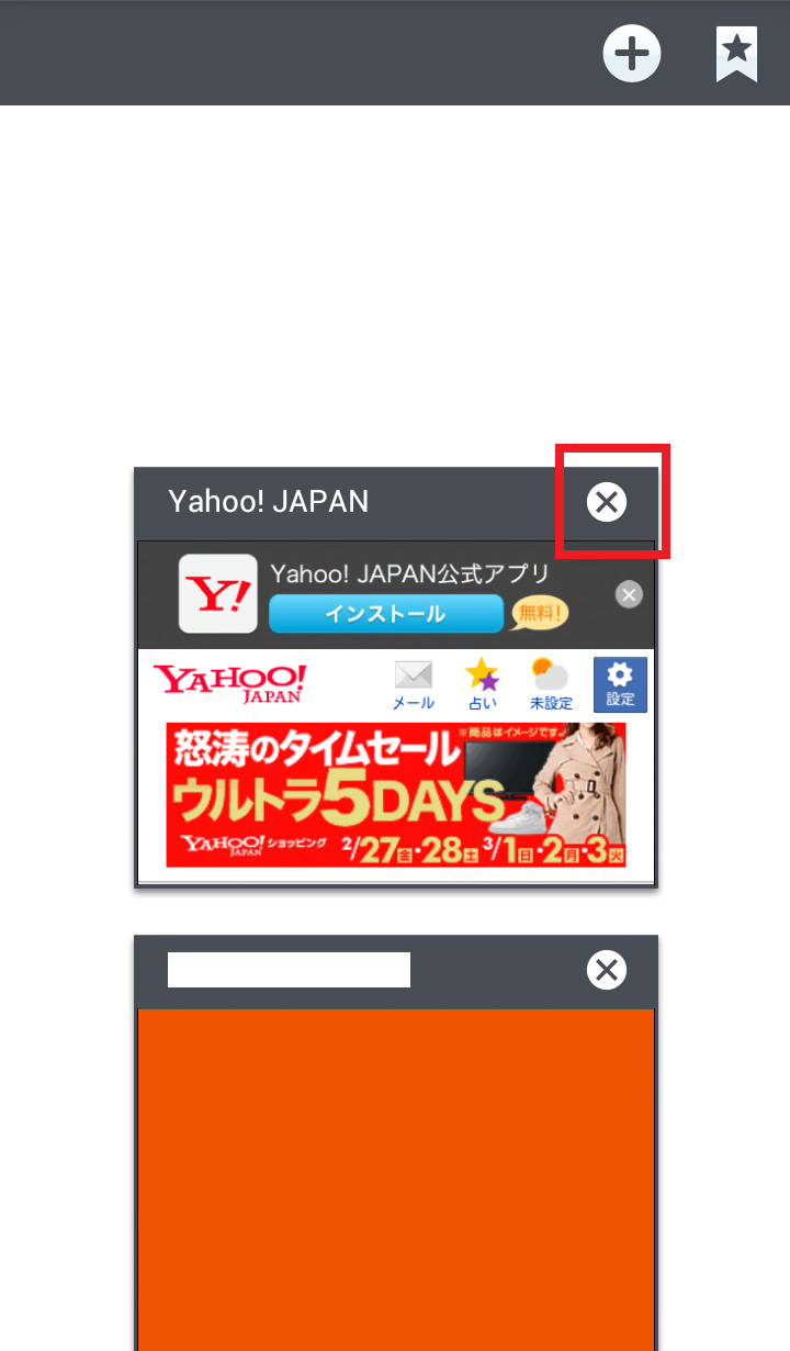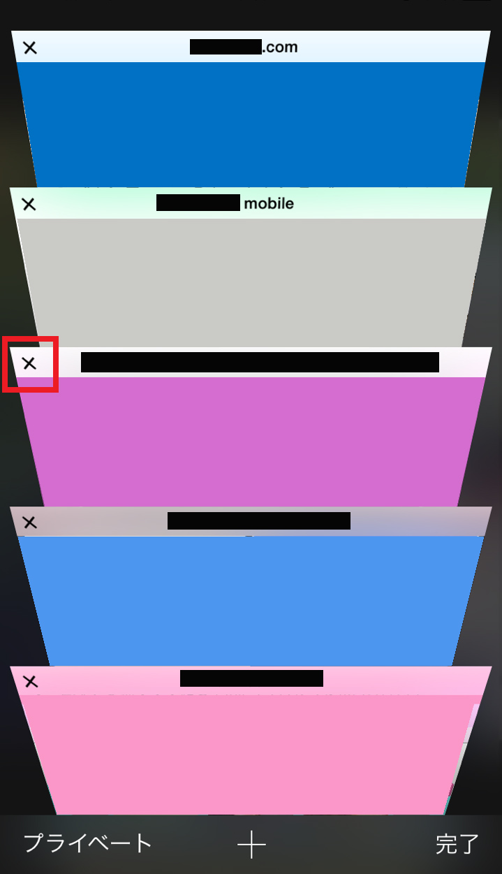 ブラウザを立ち上げ、画面右下に表示される「タブ」ボタンをタップすると、現在開いているページが一覧で表示されます。削除したいページの「×」ボタンをタップすればページが閉じ、表示されなくなります。簡単ですよね。