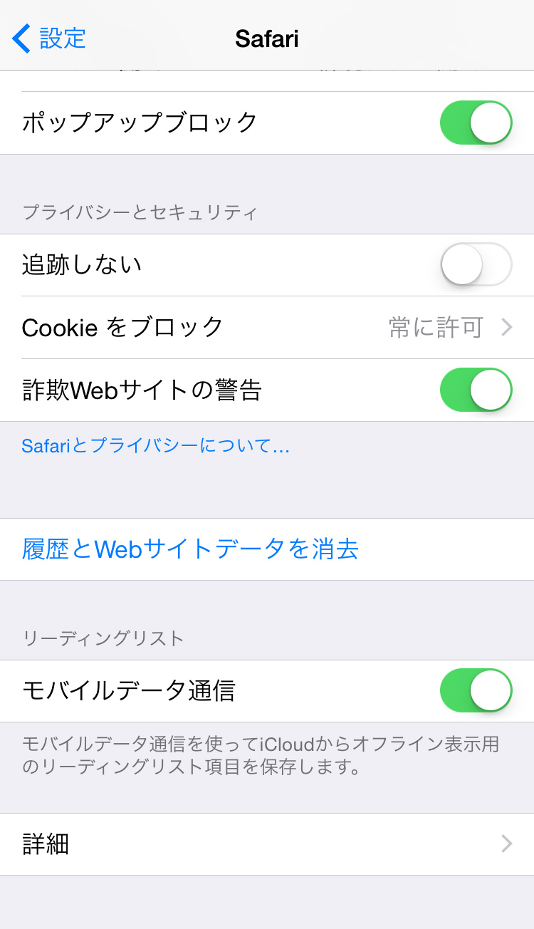 「設定」から使っているブラウザの項目を選び、「履歴とWebサイトデータを消去」をタップします。この操作ですべてのタブが削除され、これまで「Safari」で見たすべてのWebサイトのデータが消えるため、再びワンクリック請求の画面が表示される心配はありません。