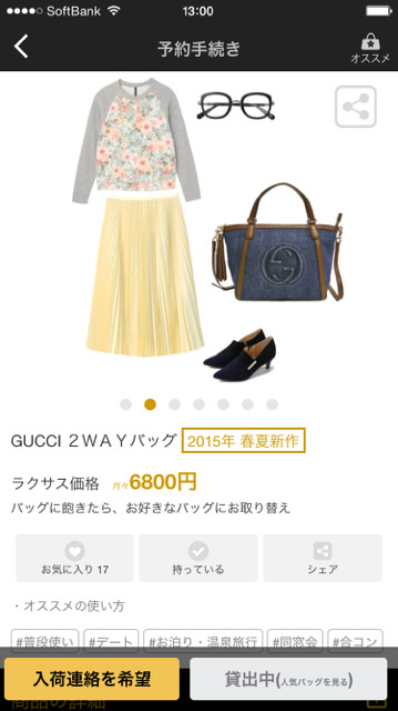 2015年3月からサービスを開始したファッションレンタルアプリ「SUSTINA」(iPhone、Android/無料)では、月額6,264円(税込)で、送料・クリーニング料なしで何度でも借りられます。