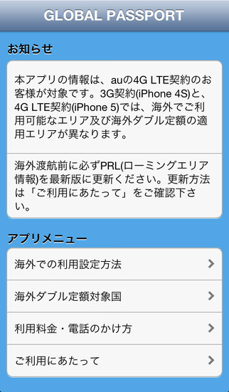 アプリ「グロパス」(iPhone/無料)、「GLOBAL PASSPORT」(Android/無料)は渡航先が「海外ダブル定額」の対象か確認できるだけでなく、海外での電話のかけ方などの情報も載っています。