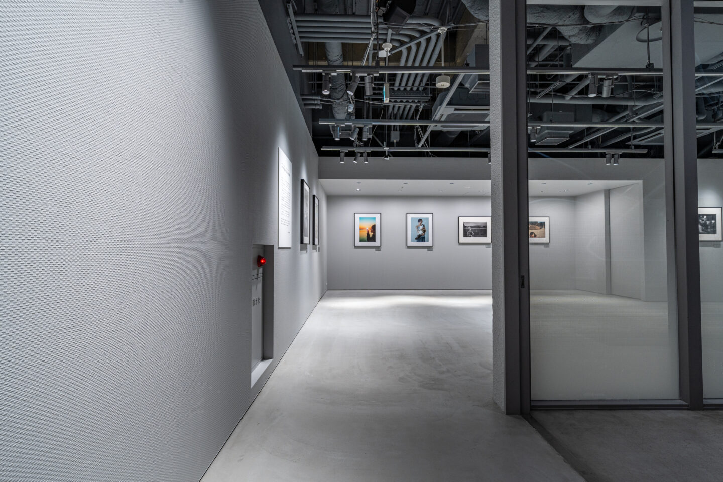 ギャラリー内は新宿 北村写真機店のトーンと同じグレーを基調としており、どのような色の作品でも引き立たせます。壁面も途中で奥行きのあるスペースがあることで、場面や作風を切り替えるといった使い方もできる洗練された空間になっています。