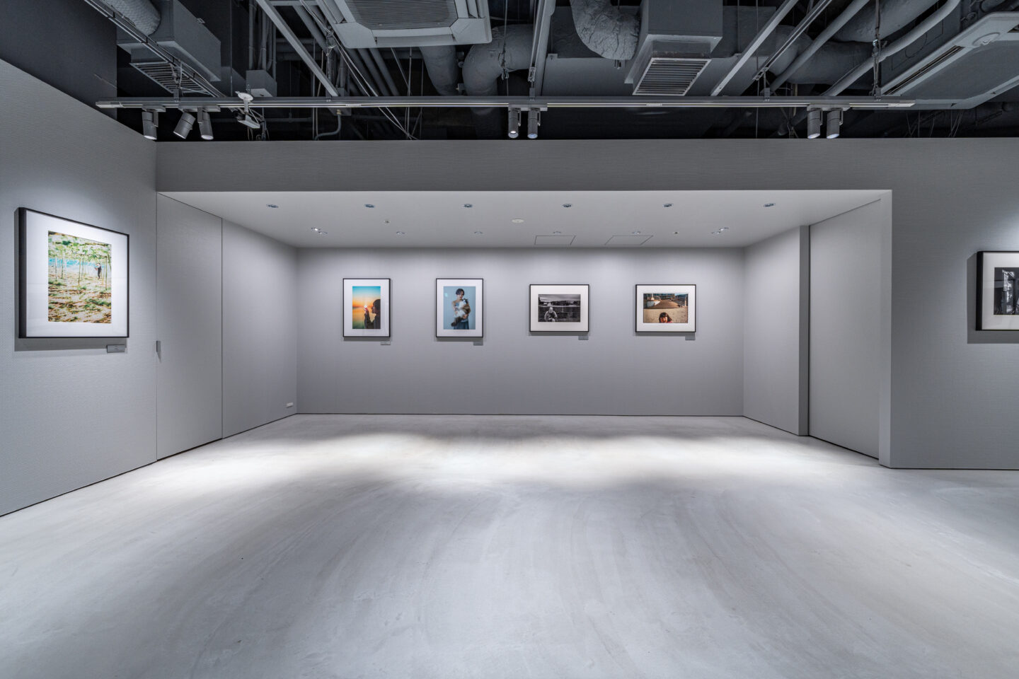 ギャラリー内は新宿 北村写真機店のトーンと同じグレーを基調としており、どのような色の作品でも引き立たせます。壁面も途中で奥行きのあるスペースがあることで、場面や作風を切り替えるといった使い方もできる洗練された空間になっています。