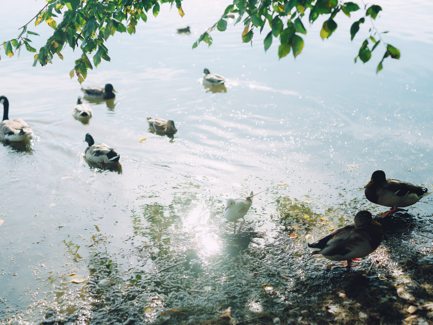 街で見かけた木漏れ日の差す路地や、湖のそばでぼんやりと佇む鳥の姿など。