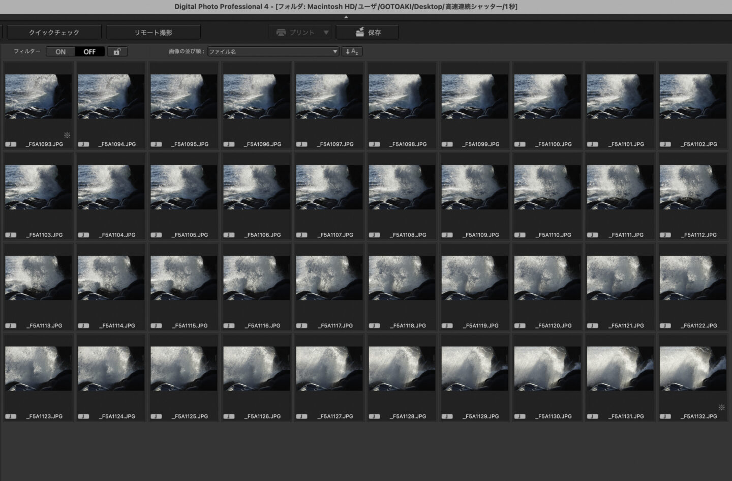 電子シャッターで1秒間に撮影した40枚のサムネイルデータです。