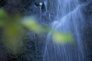 こちらは和歌山県の那智の滝です。カメラはEOS R5で、EVF(電子ビューファインダー)を覗きながら、手持ち撮影しました。岩肌の造形と木々の細かな質感だけでなく、高速シャッターで水の一瞬の表情も捉えています。
