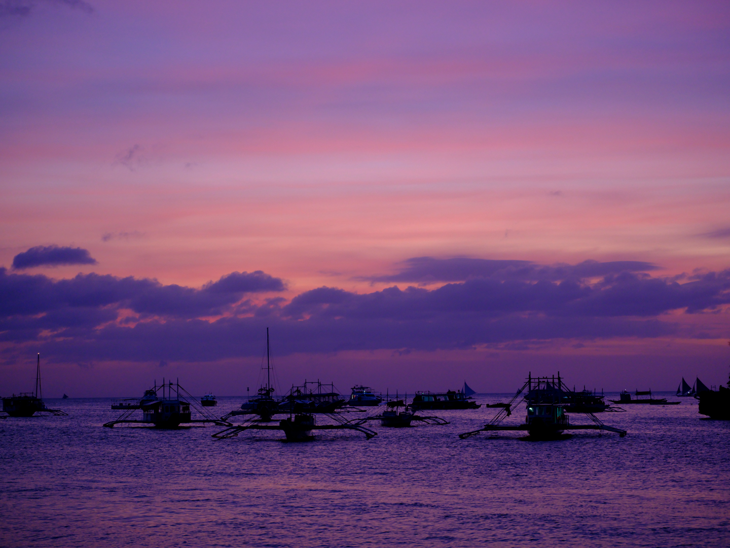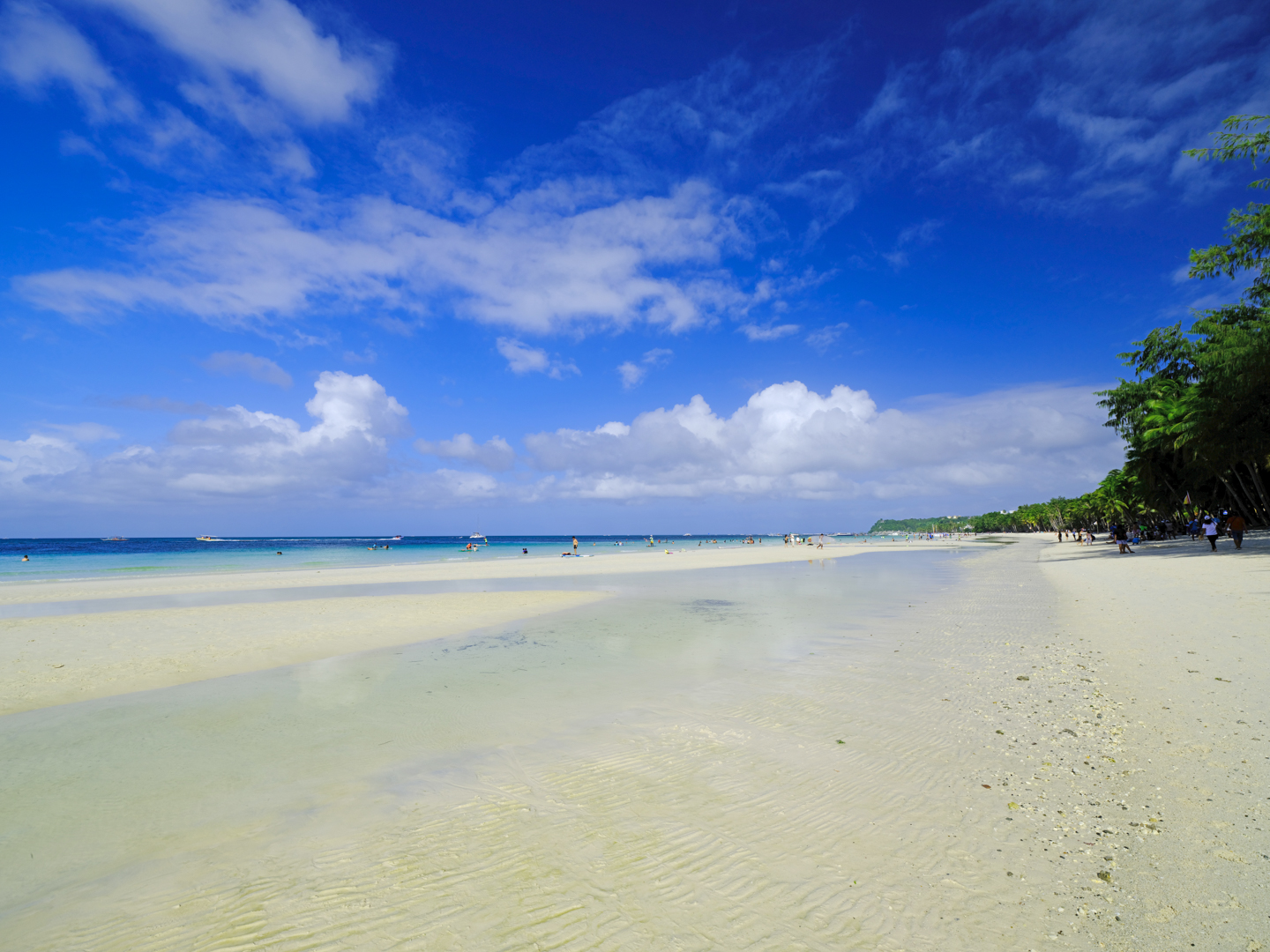 ルソン島を後にして飛行機で次に向かったのはボラカイ島。この島は長さ7.5km、幅は最も狭い場所で2kmしかない小さな島ですが、フィリピン有数のリゾート地です。全長4kmの白砂のホワイト・ビーチが有名です。この島には空港がないので隣接するパナイ島の空港から船に乗り換えて向かいます。