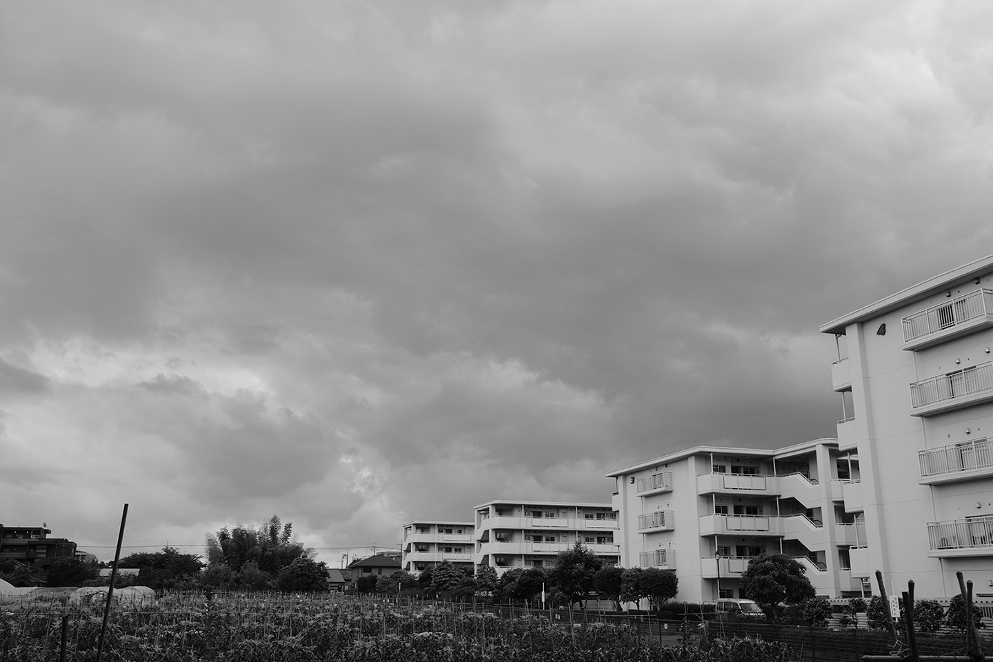 左の露出補正をしていない写真はかなり重たい雰囲気で、これから雨が降りそうな厚い雲になっていますが、そんな雲をイメージしながら撮影しました。モノクロの露出補正はどんなイメージにするかがポイントです。右の露出補正を+1.0EVした写真は見た目の明るさに近くそれほど印象的に感じません。ちなみに後から画像補正をすれば良いというのも楽で良いとは思うのですが、撮影時にイメージを広げた方がモノクロらしく風景を見ることにつながるので、結果的にモノクロ写真が楽しくなります。