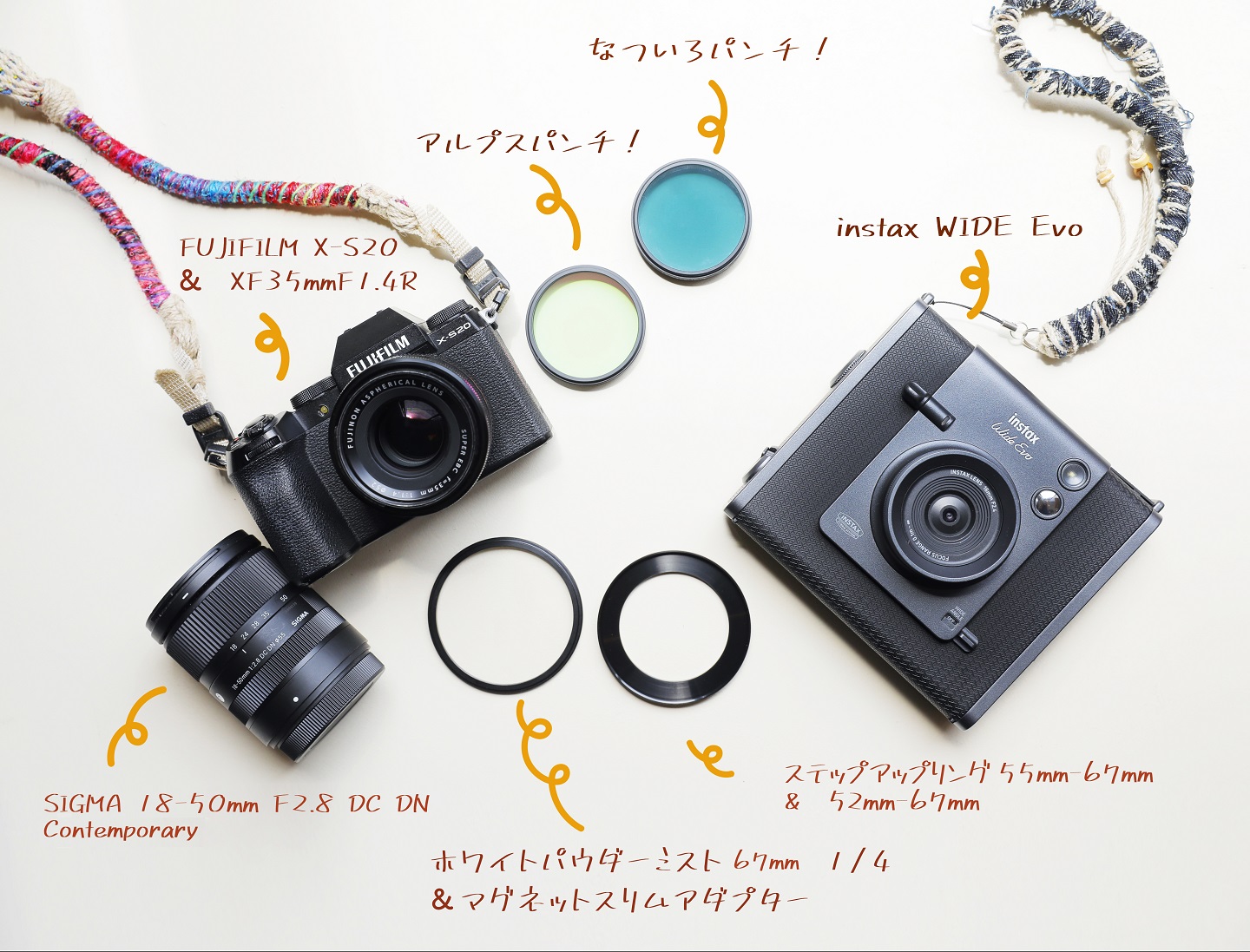 X-S20は今回撮影するメインのカメラなのだけれど、instax WIDE Evoはカメラ+プリンターとして同行してもらった。