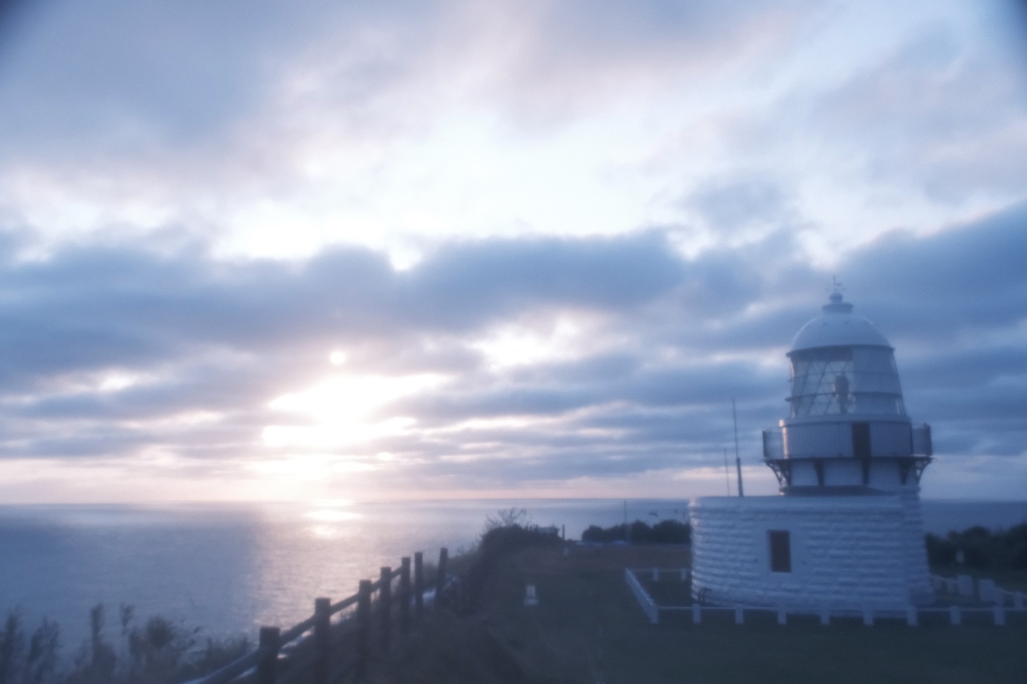 暗いうちから”禄剛崎灯台”の山にのぼって、雲間を游ぐ光を眺める。