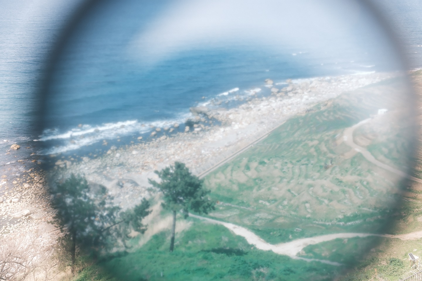 小さな田んぼが重なって、海岸までつづく千枚田。田植えの季節がもう少しで到来。