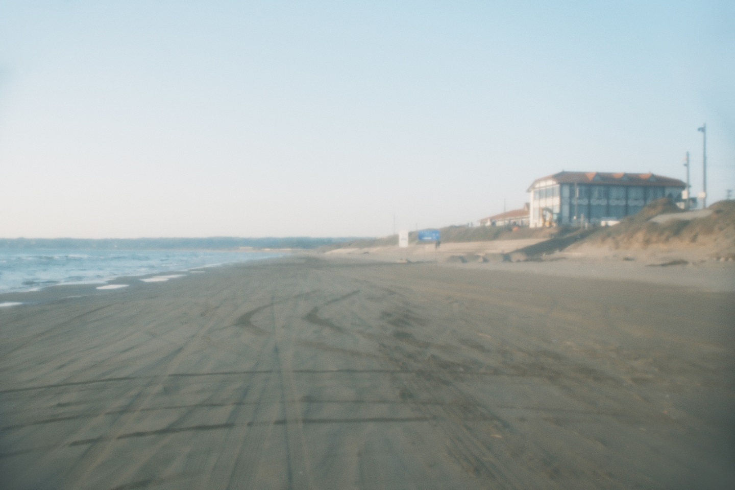 ちょうど夕陽が沈むところ、浜辺には車輪のあとが遠くまで広がっていて、それはとてもドラマチックで、このまま地球を1周してみたいと目を細めながら見惚れてしまった。