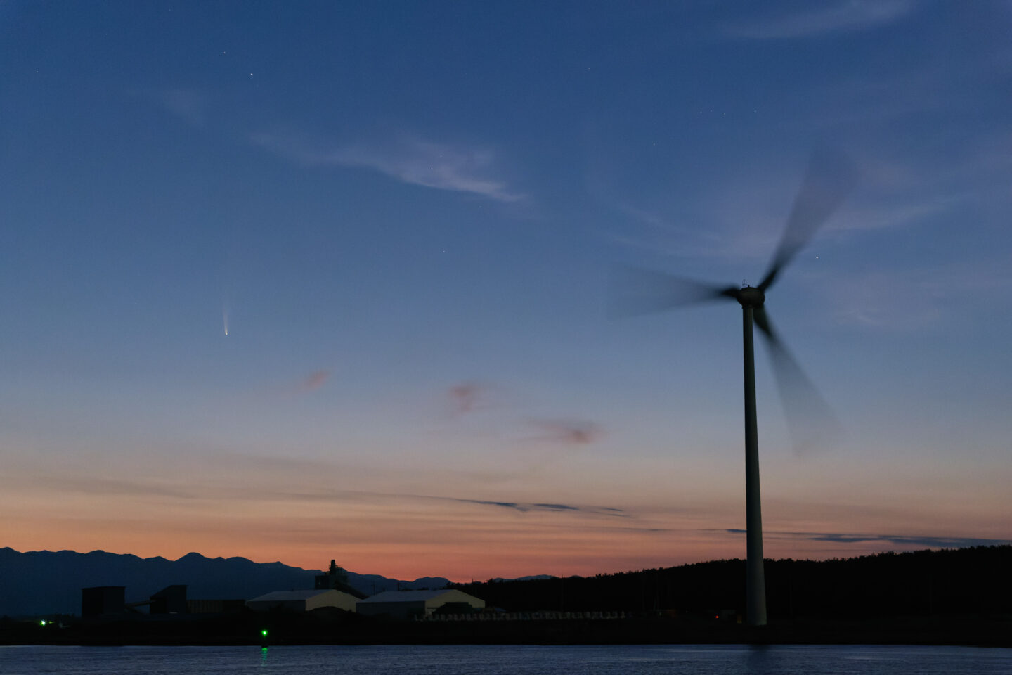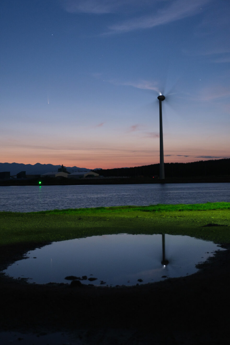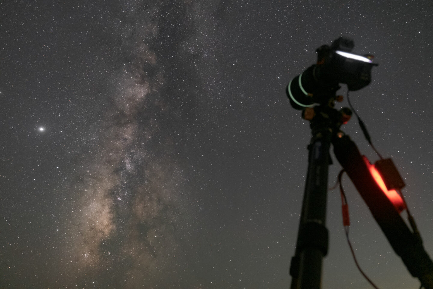 構図の左側にうっすら見えるのが2020年の夏に地球に接近した「ネオワイズ彗星」。こうした、何mmで撮影すればいいのかわからない被写体のときにズームレンズは本当に便利。細かい画角を調節して撮影することができます。