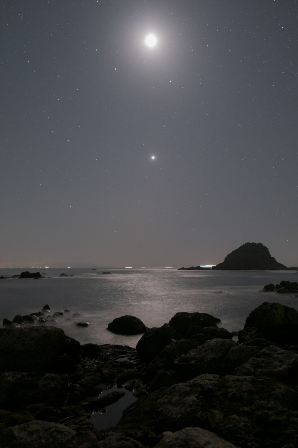 逆光でのゴースト特性を検証。それぞれ灯台の光、月の光、太陽の光を正面に向けて撮影している作例ですが、ゴーストの発生は抑えられているように感じます。