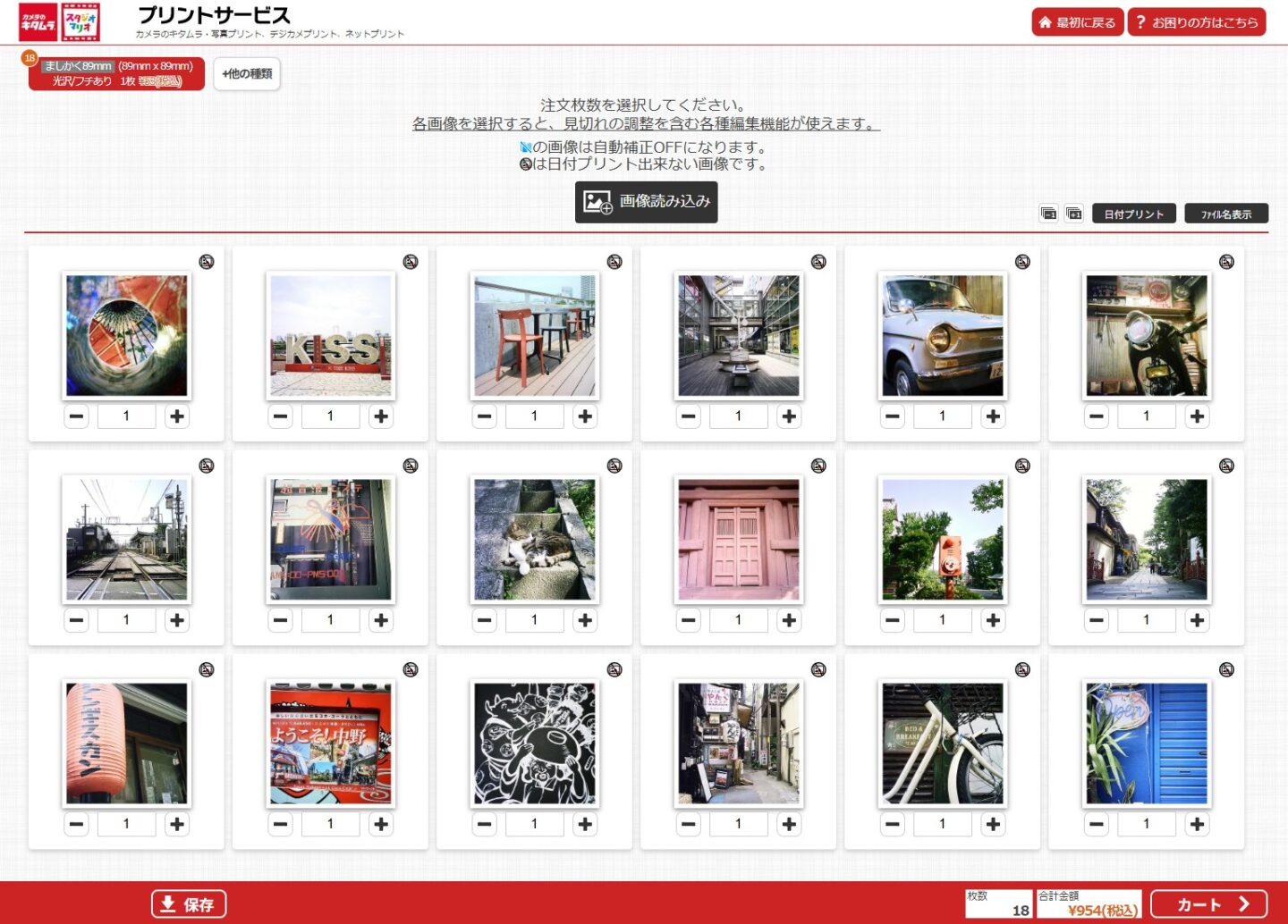 画素数は少し低いデータなので大きなプリントに向いていませんが、スクエアフォーマットにピッタリのカメラのキタムラ「ましかく」サイズ89x89mmの写真プリントがあります。今回はこのサイズで白いフチありでインターネットプリント注文をしてみました。