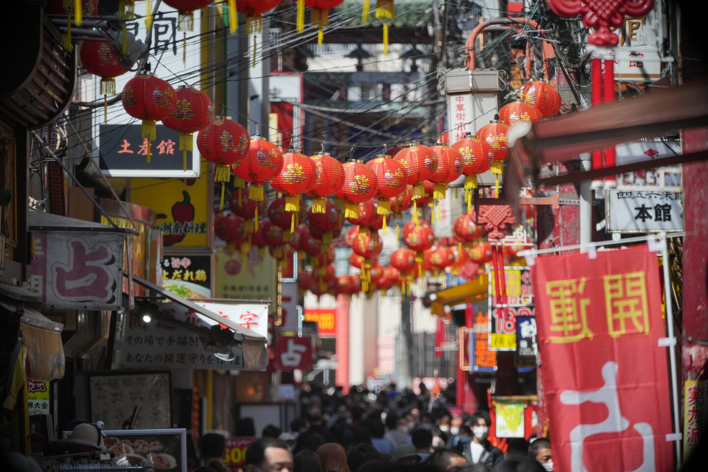 人出の多い場所での圧縮効果を狙ったシーンを撮りたかったので、横浜中華街に出向いて撮影をしてみました。下の写真は、「SZ 300mm PRO Reflex F7.1 MF CF」を付けたカメラを頭の上まで持ち上げて少し高い位置からのアングルで撮影しています。小型軽量の「SZ 300mm PRO Reflex F7.1 MF CF」ならではのアングル撮影ではないでしょうか?