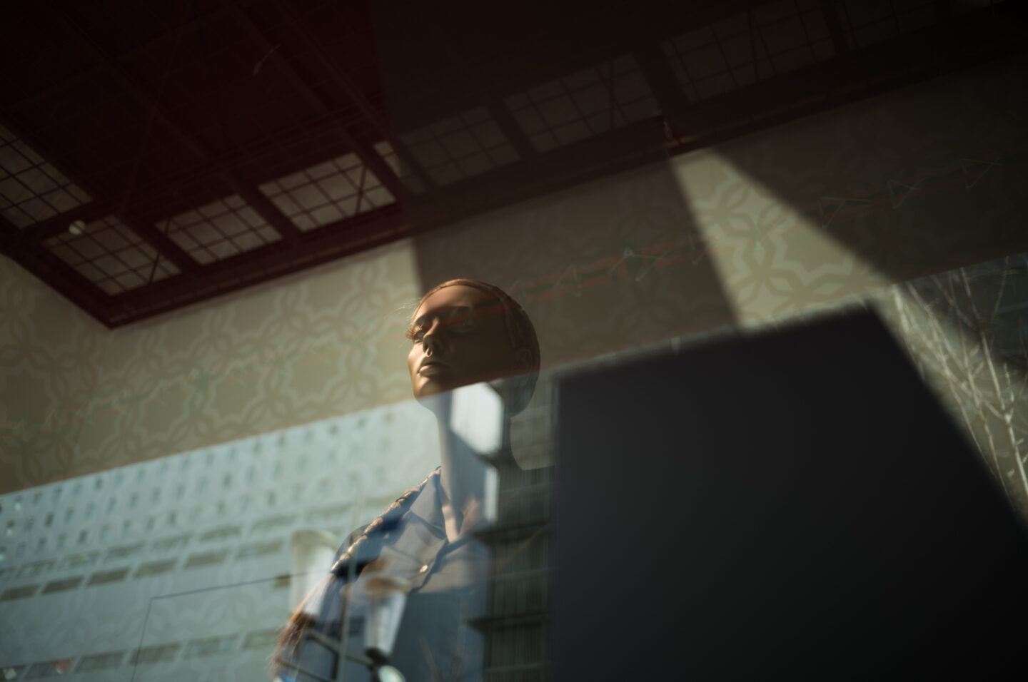 別のショーウィンドウのマネキンに近づいて絞り解放で撮影。ファインダーはライカM11-Pと同様、非常に見やすくピントも合わせやすい。普段は撮りたい被写体を見つけたら手元でピントを合わせ、瞬間、ファインダーを覗いて微調整するだけだが、たまにじっくりファインダーを覗いてみると、改めてその美しさに気づいたりする。
