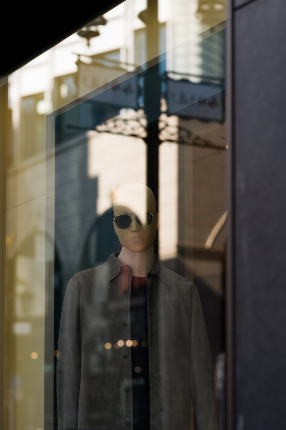 このような写真はM型ライカの得意分野だと思っていたら、いやいやどうしてライカSL3ならお手のものですよ、フン、と鼻で笑われているような写り。なんというか、乾いた写りにならないのだ。ガラスなどの硬質な材質を写してもどこか水面を思わせる、硬い面に跳ね返されるのではなく、すっと奥へ引き込まれるような情緒的な写りをしてくれる。無表情であるはずのマネキンも、どこか人間味を感じさせるではないか。