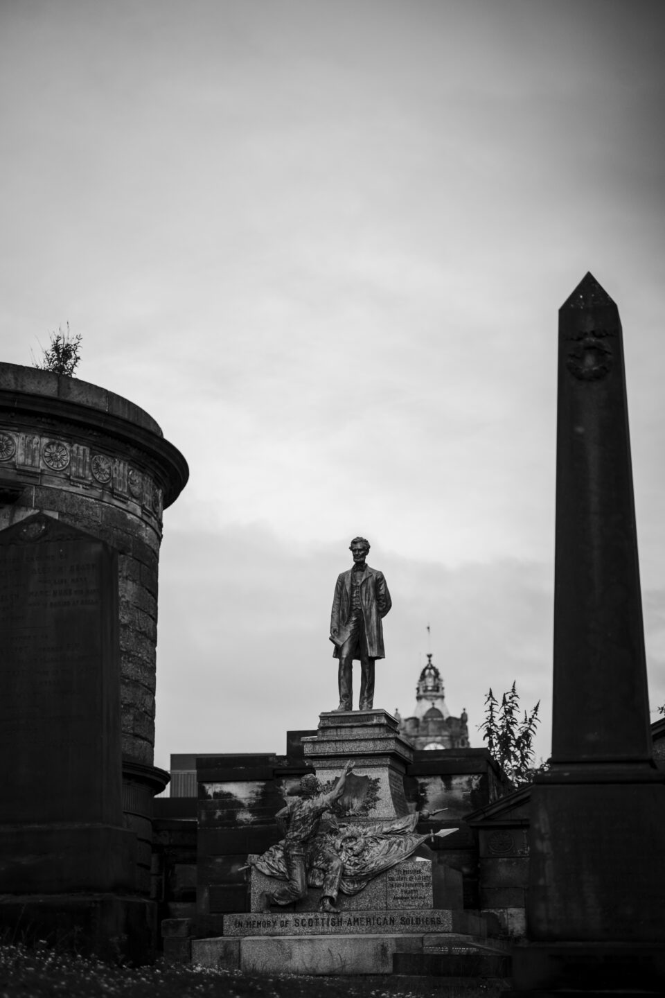 エジンバラの街を見下ろす「カールトン・ヒル」に登り、旧市街へむけてファインダーをのぞきます。これから歩こうとする旧市街は、南北各々500mほど。電車やタクシーなどの交通機関に頼らずとも自らの足で歩くことができそうです。
