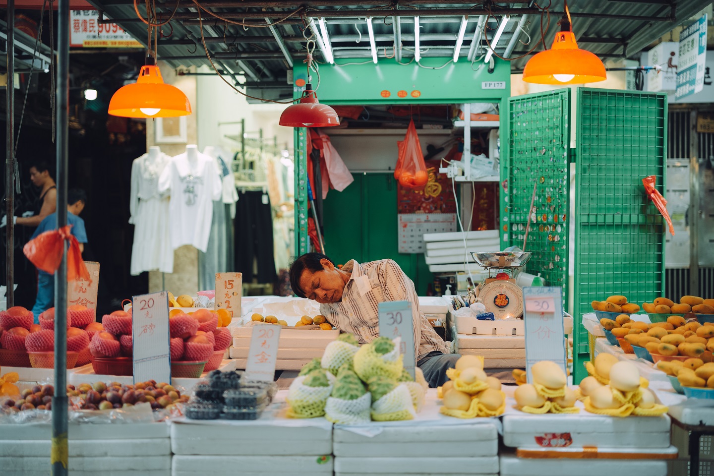 看板の数こそ減ってはいましたが、建物には洗濯物がかけられ、市場にはApple製品の贋作や、日本のアニメ・漫画のキャラクターの偽物商品が並んでいます。魚介類の生々しい香りを包み込むように漂ってくる果物の濃厚な香りと、行き交う自動車とバイク。