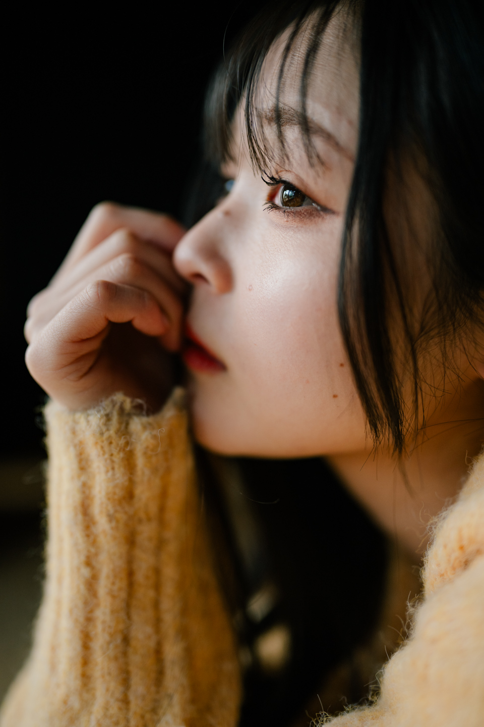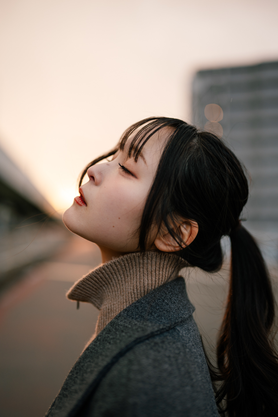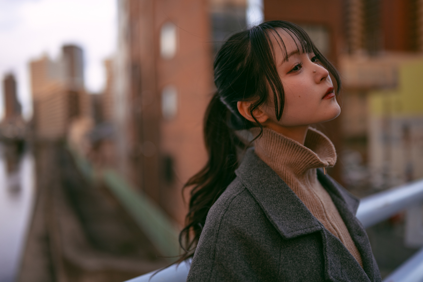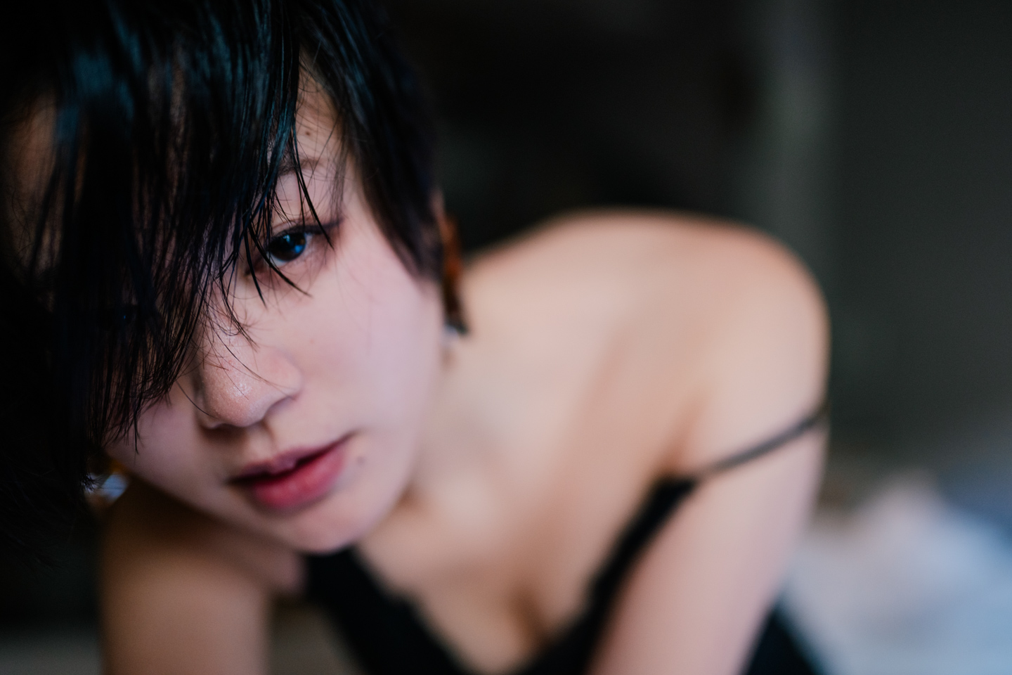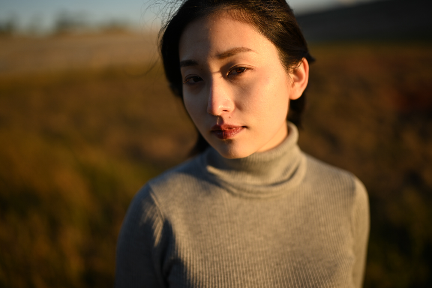被写界深度が極めて浅いので、ピントが合ったモデルさんの瞳に自然と視線誘導され、その表情に惹き込まれる感覚を生み出してくれる。顔に寄ってわざと前髪にピントを合わせると、そのすぐ奥にある瞳がいい感じにボケてくれるので、アンニュイな雰囲気や柔らかな質感をまとわせたい時にも非常に有効だ。