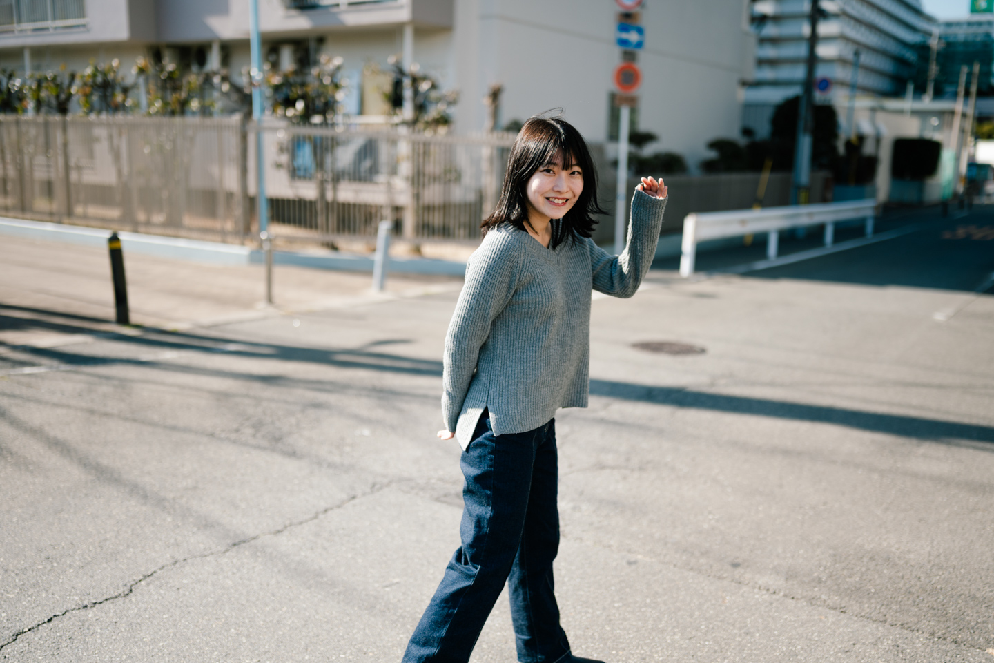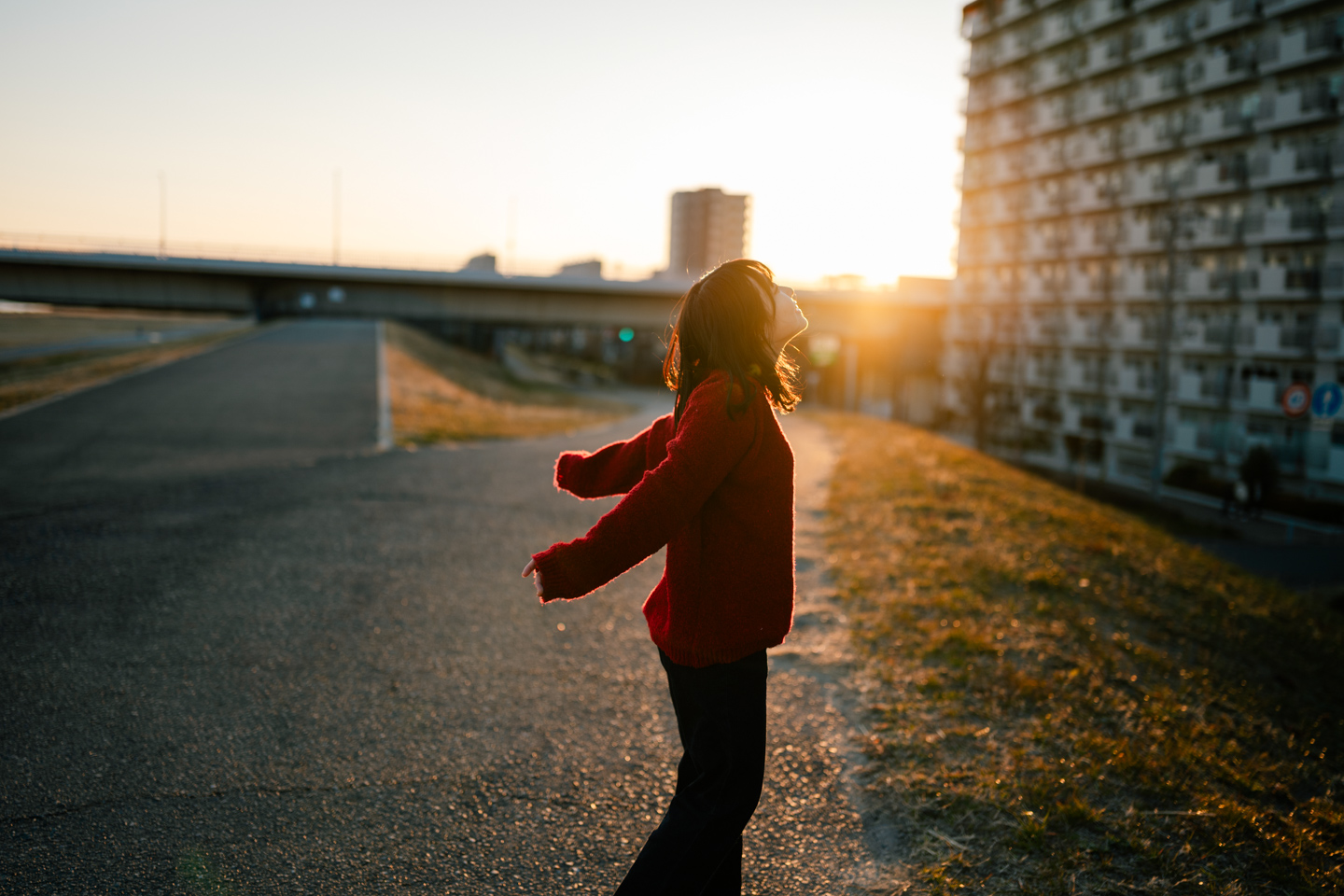 オールドレンズみたいな逆光を活かしてふわっと柔らかなポートレート、という感じの表現はこのレンズではできないが、余計なフレアなど被写体を邪魔するものがなにもなく、逆光でこれだけ綺麗に撮れることに感動を覚えた。光を受けてモデルさんの輪郭が強調されるとともに、F1.2のボケ感も相まってなおさら背景から分離しているように感じられる。大きくプリントしたときにこの美しさがより伝わるのではないかと思う。