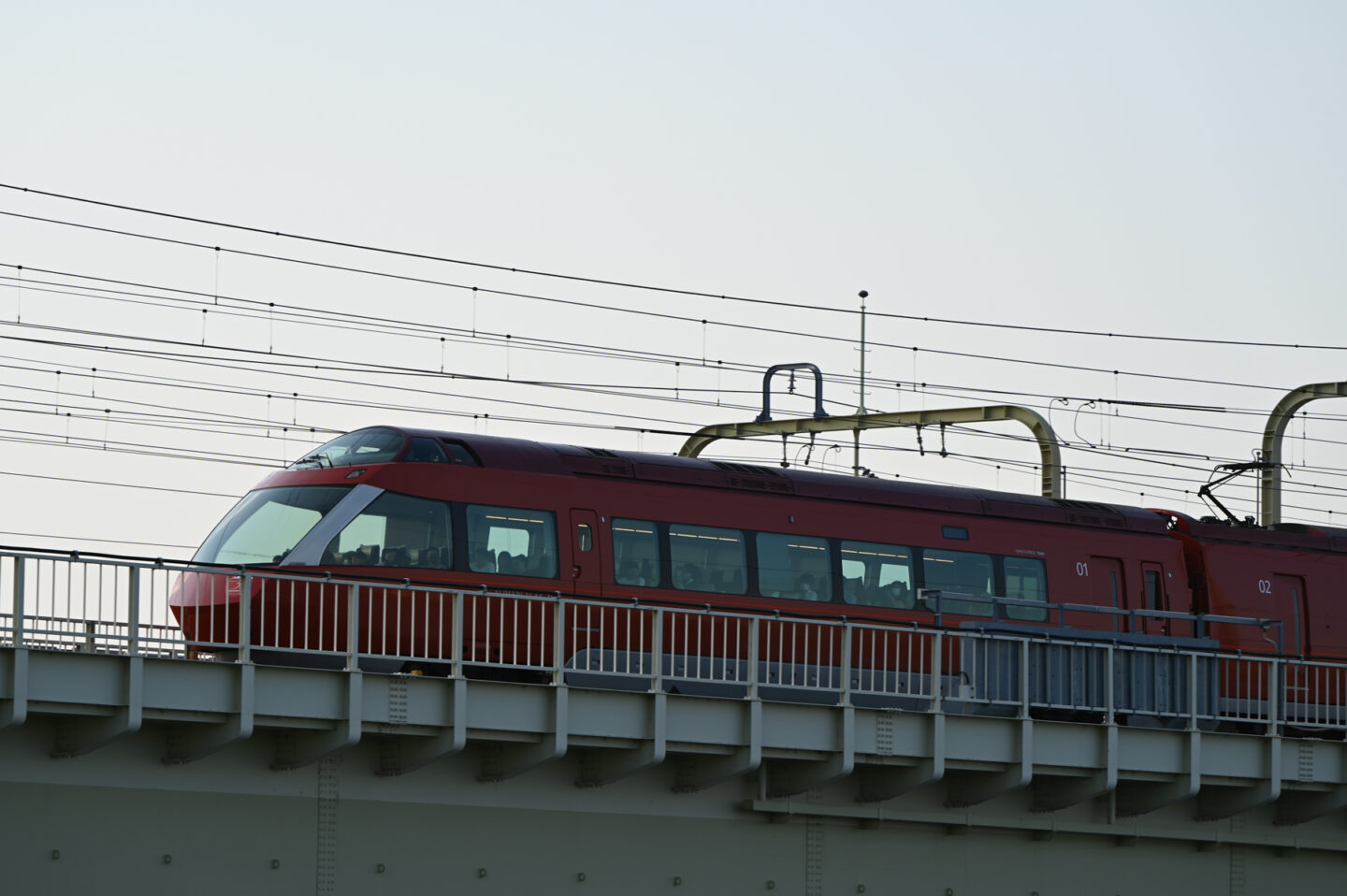 橋を渡ってくる小田急ロマンスカーGSEを連写しました。どのコマもビシッとピントが合いシャープな写りでした。動体もイケる望遠ズームレンズになっていると思います。