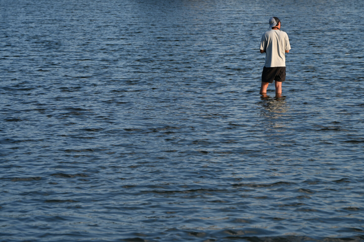 川に立ち込んで釣りをしている人の後ろ姿です。色づいた太陽の日射しを浴びて気持ちよさそうにキャスティングを繰り返していましたが、その夕方近い雰囲気をこのレンズは自然な色合いでキャプチャーしてくれました。立体感もいいですね。