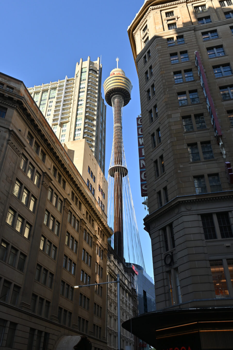 シドニー中心部の一角で、ビルの隙間からちょうどシドニータワーが見えるポイントがあるのですが、やはり撮りたくなってしまうもの。タワーの大きさを決めるのに、やはりズームレンズは便利です。