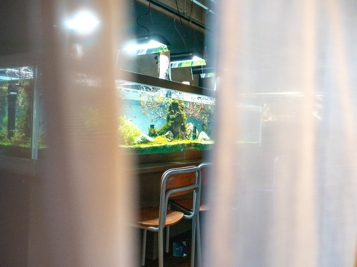 撮影が終了してごはんタイム。地下のフードコートの上部にもこのようなお洒落な水槽があります!