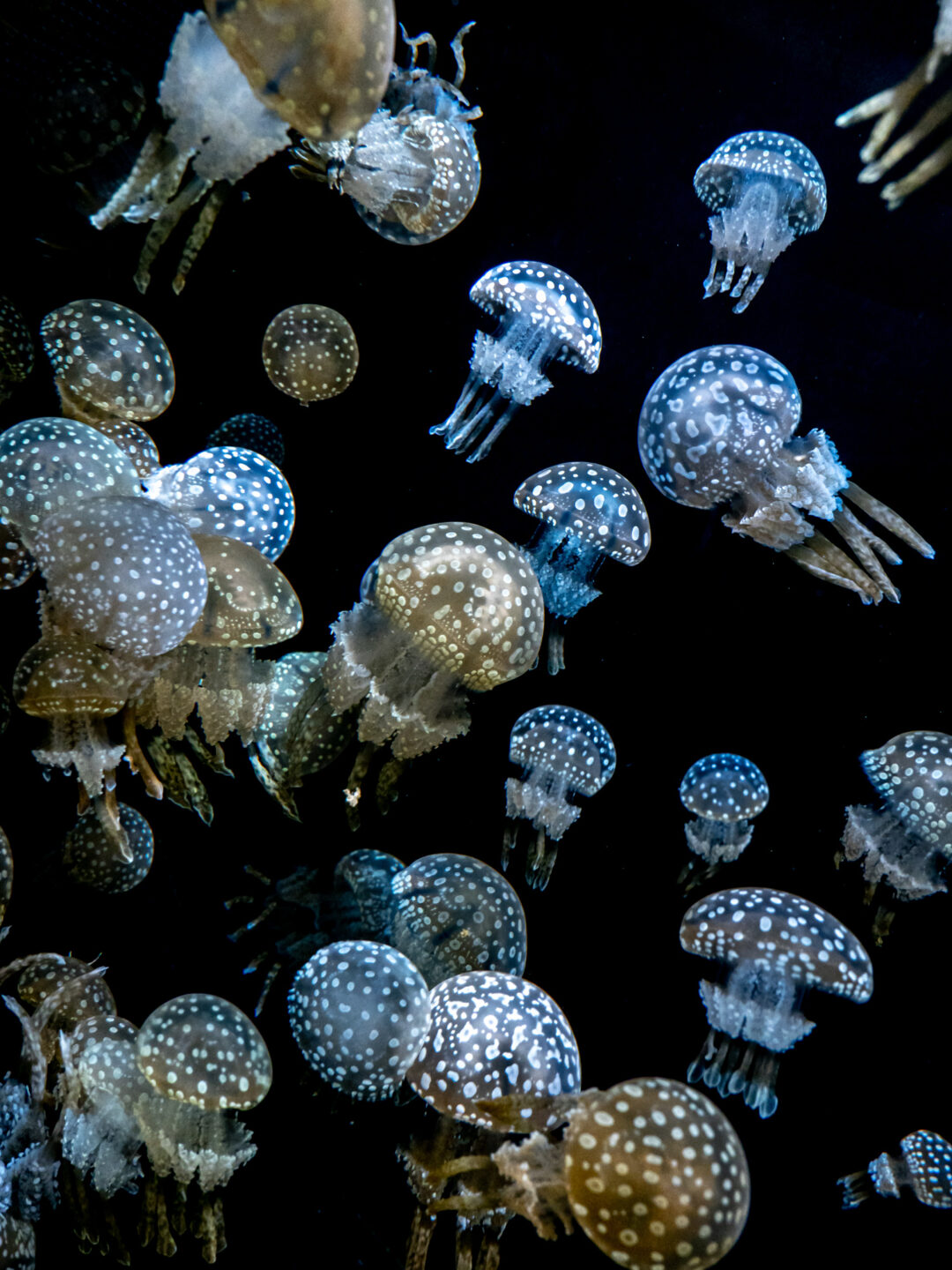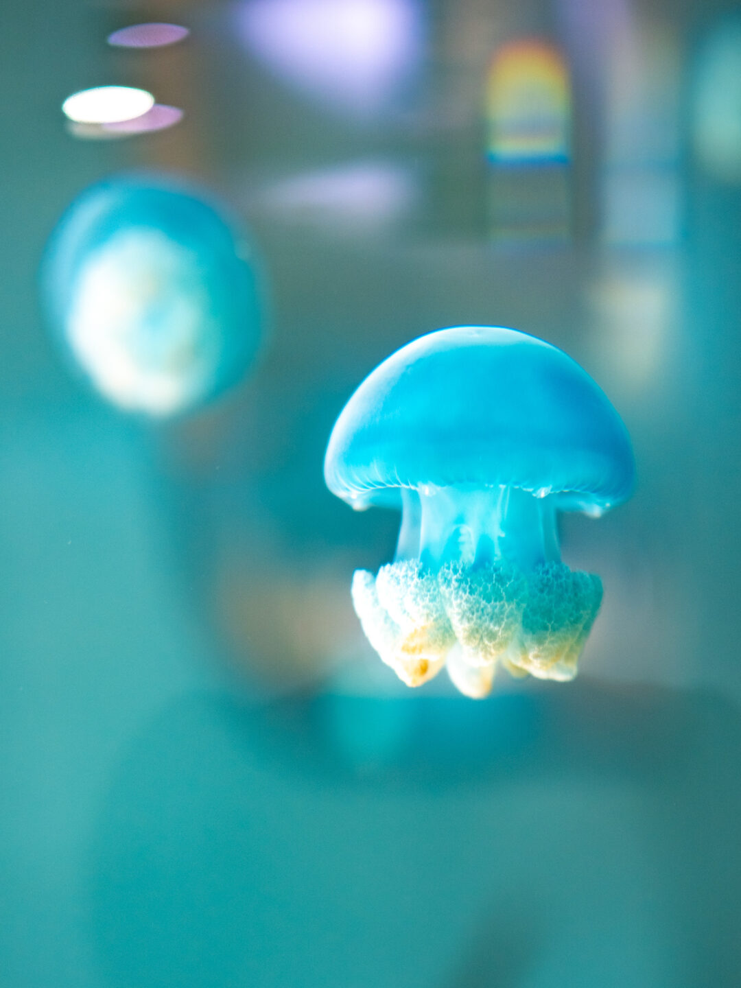 非常に美しい水槽の中を沢山のタコクラゲが泳いでいました!質感も奇麗に表現できて満足です。