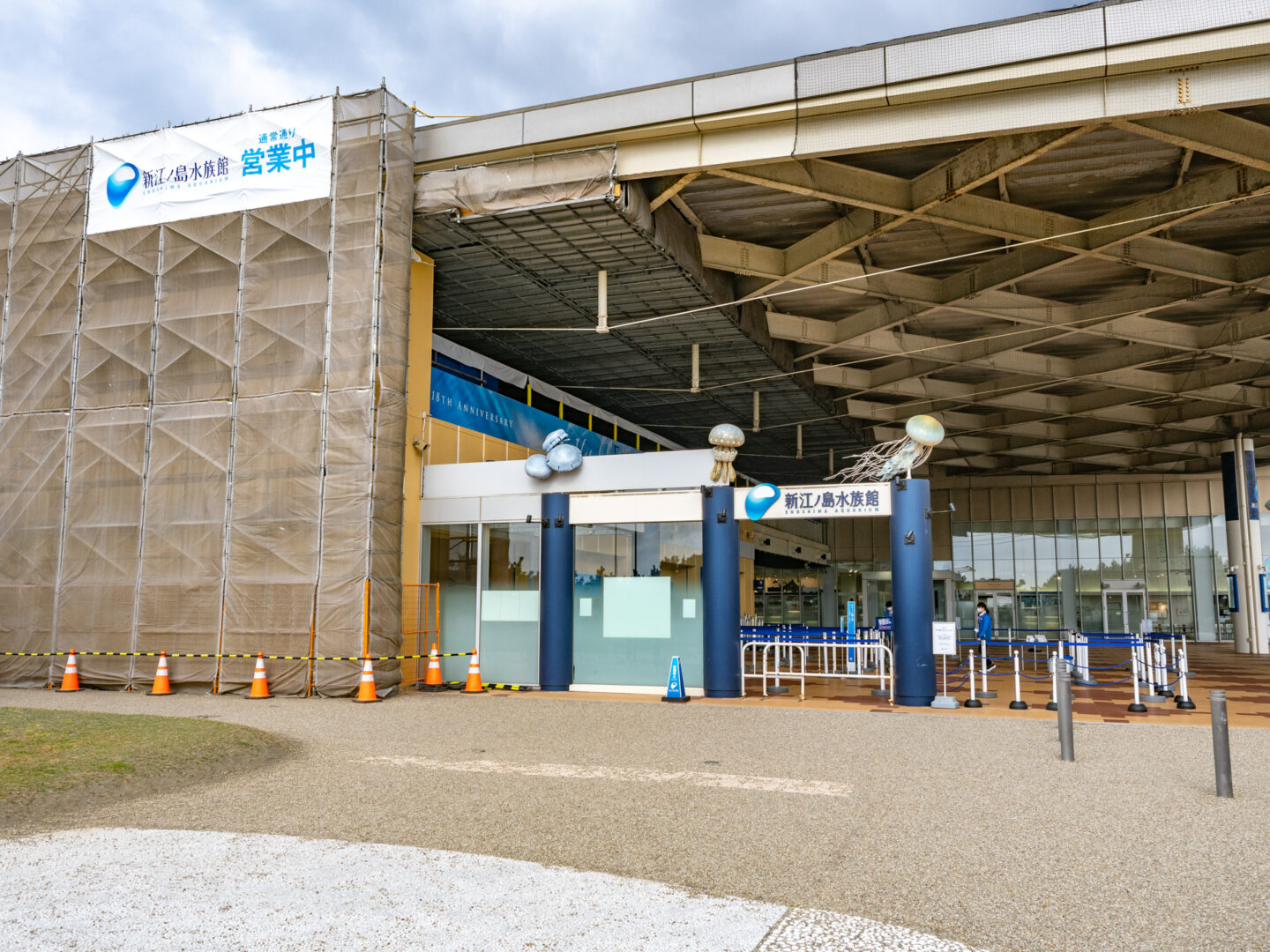 新江ノ島水族館は3月に訪れた日は外観を改装中でした。最寄りの江ノ電の駅には奇麗なクラゲの水槽がありますので、電車とクラゲを撮影したい方は是非電車で訪れることをお勧めします!!