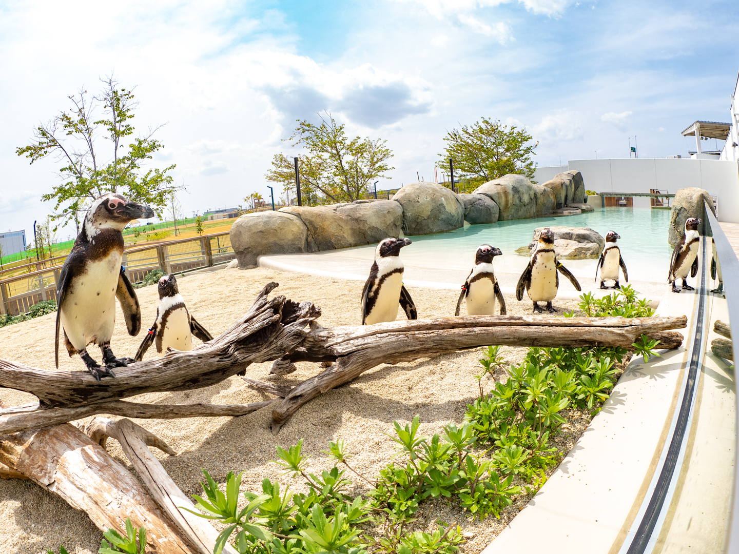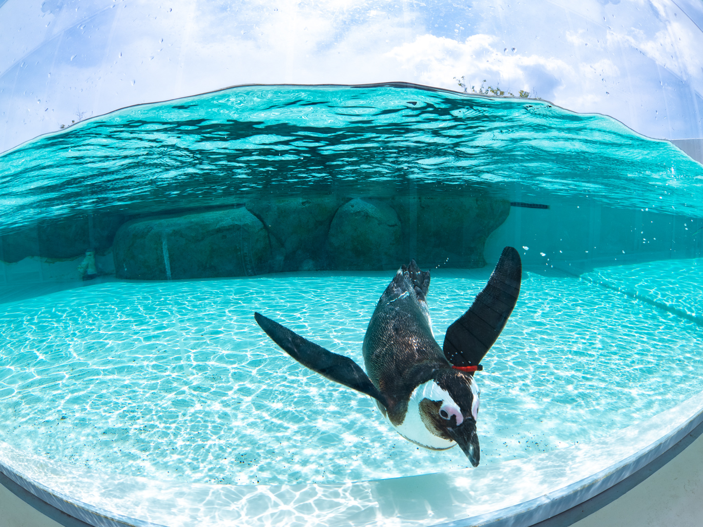訪れた時に新しく新設されていた、南アフリカケープタウンのペンギン保護区・ボルダーズビーチをイメージした「うみの杜ビーチ -PENGUIN LIFE-」を紹介して頂けました!晴れていればこのようなとても奇麗な半水面写真も撮影できますよ。
