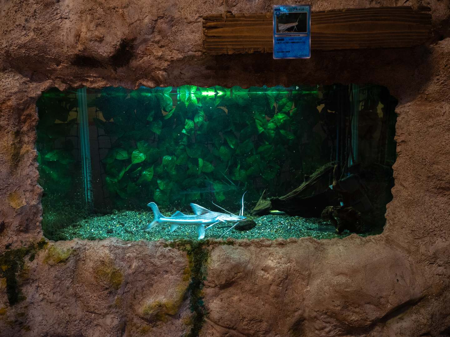 水族館エリアに入るとこのようなインパクトのあるデボン紀の巨大魚・ダンクルオステウスがお出迎えしてくれました。訪れた時はとても奇麗な館内なのですが、実は東北の震災では影響をもろに受けたらしく大変だったとのことでした。