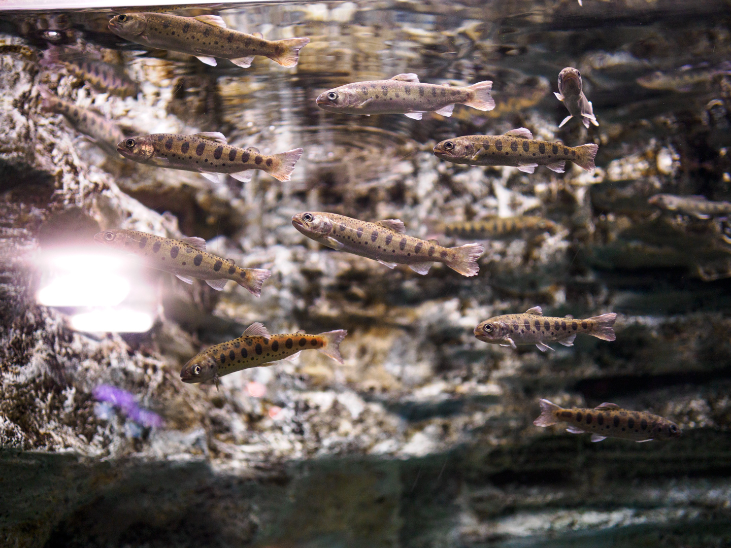 仙台の山々の淡水にはアマゴなどが生息しているという展示。水がとても奇麗でした。