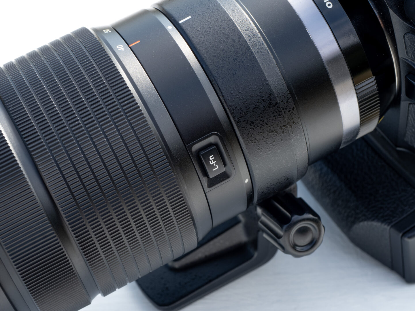 レンズ鏡筒中央部にはファンクションボタン「L-Fn」が用意されている、これは使用者が好みのカメラ機能を割り当てることができるボタンだ。カメラの「ボタンの設定」メニューから好みの機能切り替えを割り当てることで、撮影中でも咄嗟に設定を切り替えることができる。
