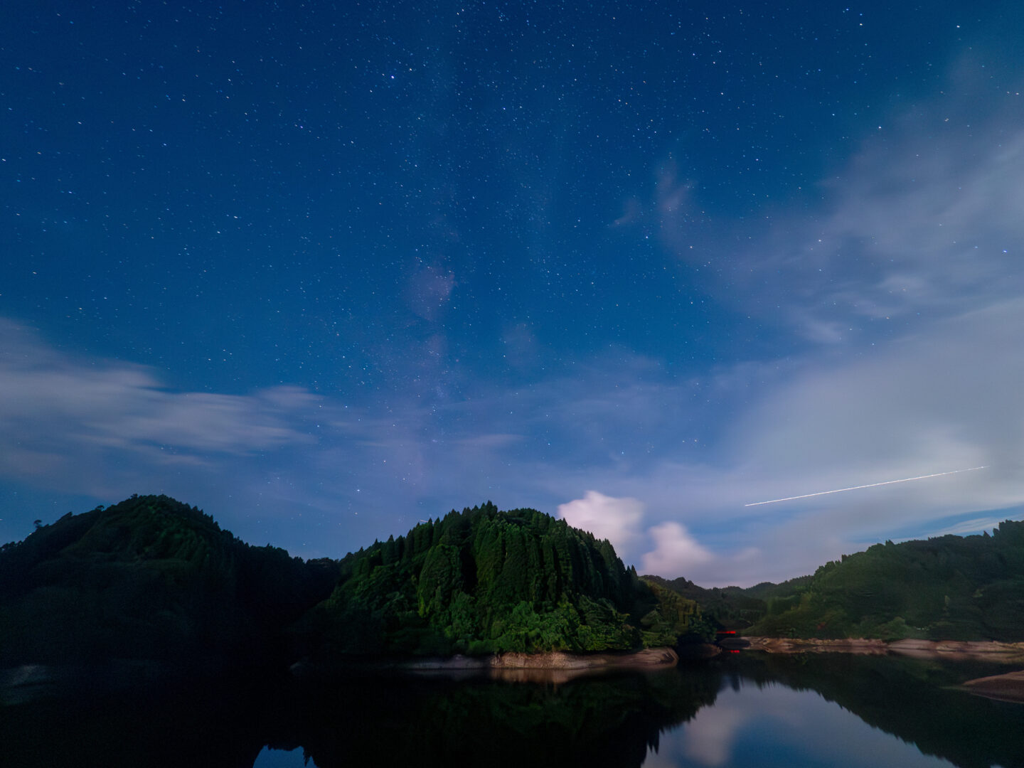 構図が決まったらテスト撮影を行い露出のバランスを整える。あらかじめ開放値に設定した絞りにあわせて、適正露出となるシャッタースピードとISO感度の組み合わせを導き出す。シャッタースピードは周囲の明るさで決まるが、太陽が完全に沈んだ状態で、かつ月明かりおよび周囲に人工光がない状況であれば、まずは15秒に合わせてISO感度は1600程度でテスト撮影を行い、写った画像の明るさを確認するといいだろう。