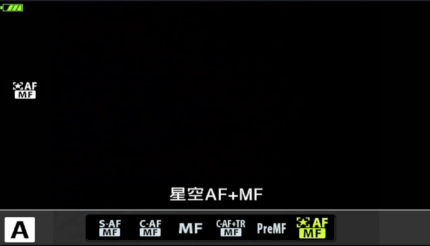 OM-1/OM-5には夜空の星にAFでピントを合わせることができる「星空AF」が搭載されている。AF方式で「星空AF」を選択したうえで、ターゲットモードをシングルターゲット、グループターゲット(3×3,6×6)のいずれかにして、ターゲットを画面内の明るい星に合わせ[AEL/AFL]ボタン(初期設定)を押すとフォーカスが開始され星にピントが合わされる。なお星空AFではカスタムメニューにて[精度優先]と[速度優先]が選択可能。[速度優先]ではより短時間で星にピントを合わせることができるので、ISO感度を上げた状態なら強力な手ぶれ補正機構と組み合わせることで、手持ちでの星空AF撮影さえもできてしまう。