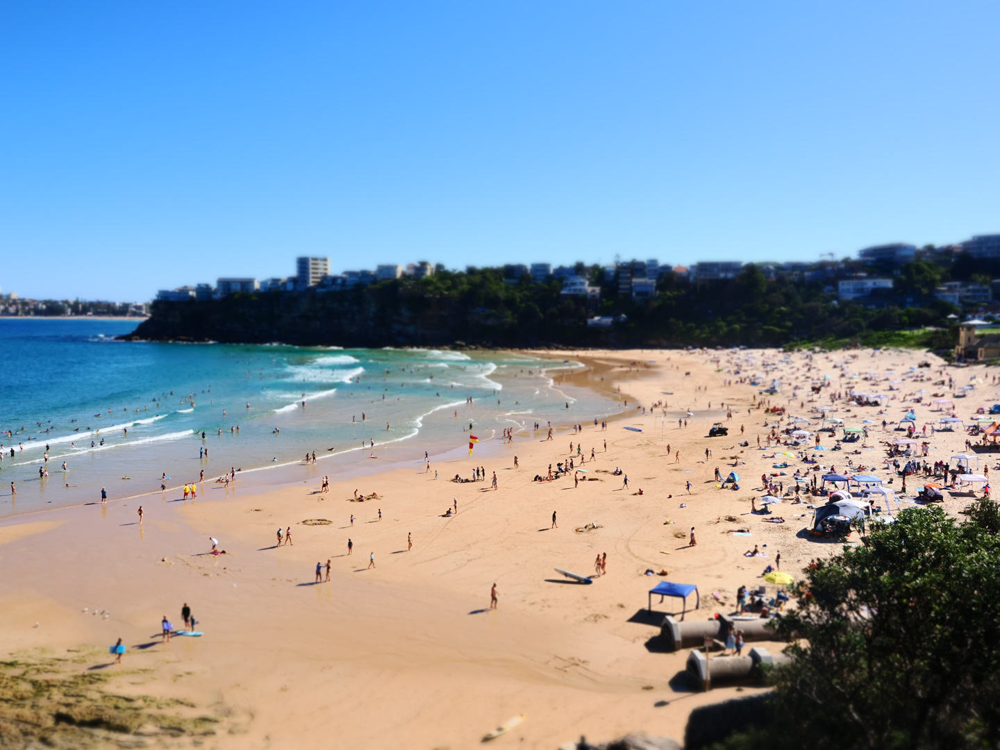 ビーチを見下ろす高台からはジオラマを選択。本物の風景なのにまるでミニチュアの世界のようになりました。