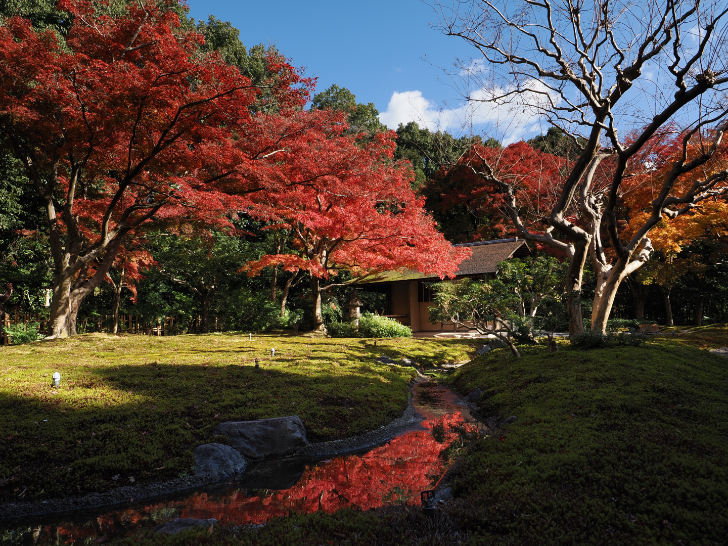 庭園内の小川に映り込んだ紅葉がとても綺麗でしたが、明暗差により日陰部分が真っ黒に。そこでライブGNDを用いたことで日陰部分の苔も綺麗に描写できました。