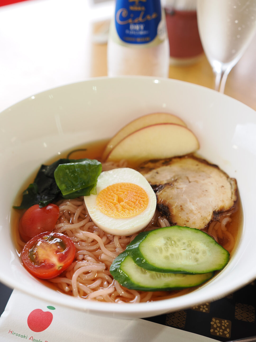 ランチにリンゴの冷麺とリンゴから造られた醸造酒であるシードルをいただきました。室内でのテーブルフォトには換算35〜50mmくらいの、明るい単焦点レンズがあるとやはり便利です。