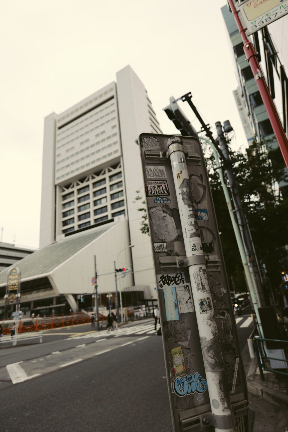 構図右側の路地裏側は無数の落書きが有り、歩道側の平和な日常を行く日傘を持った女性とは無縁の雰囲気に惹かれてシャッターを切りましたが、その瞬間に路地裏側から視線を感じたので、そちらを向くとクローズや東京リベンジャーズの世界も見えました。同じ場所でも向く方向が違えば世界も変わるのが都会のスナップの醍醐味だと思います。