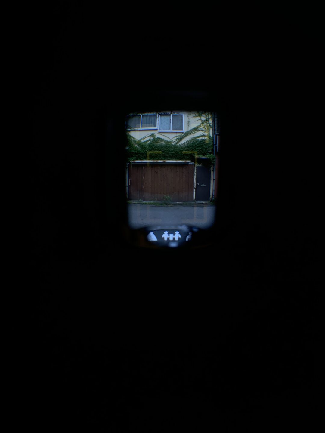 右の写真はファインダー内の写真です。自分が今どのフォーカスで撮影しているのか、確認することができます。また、マクロ撮影する際は付属のストラップ(約25cm)を使い、被写体との距離を測ることもできるのでとても便利です。