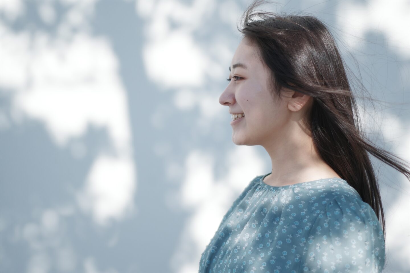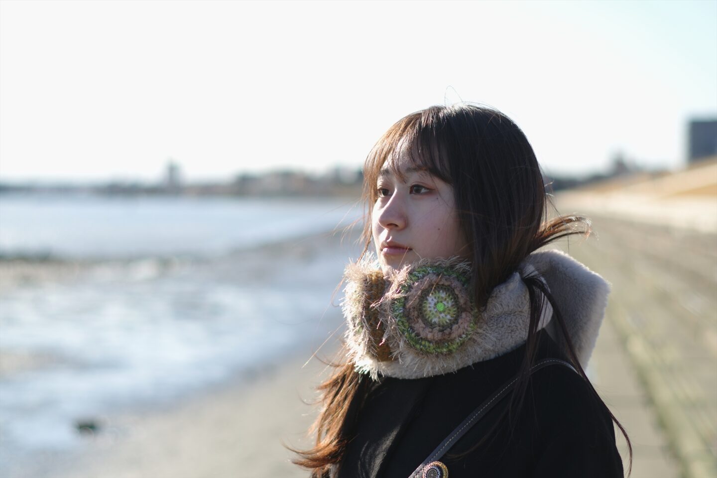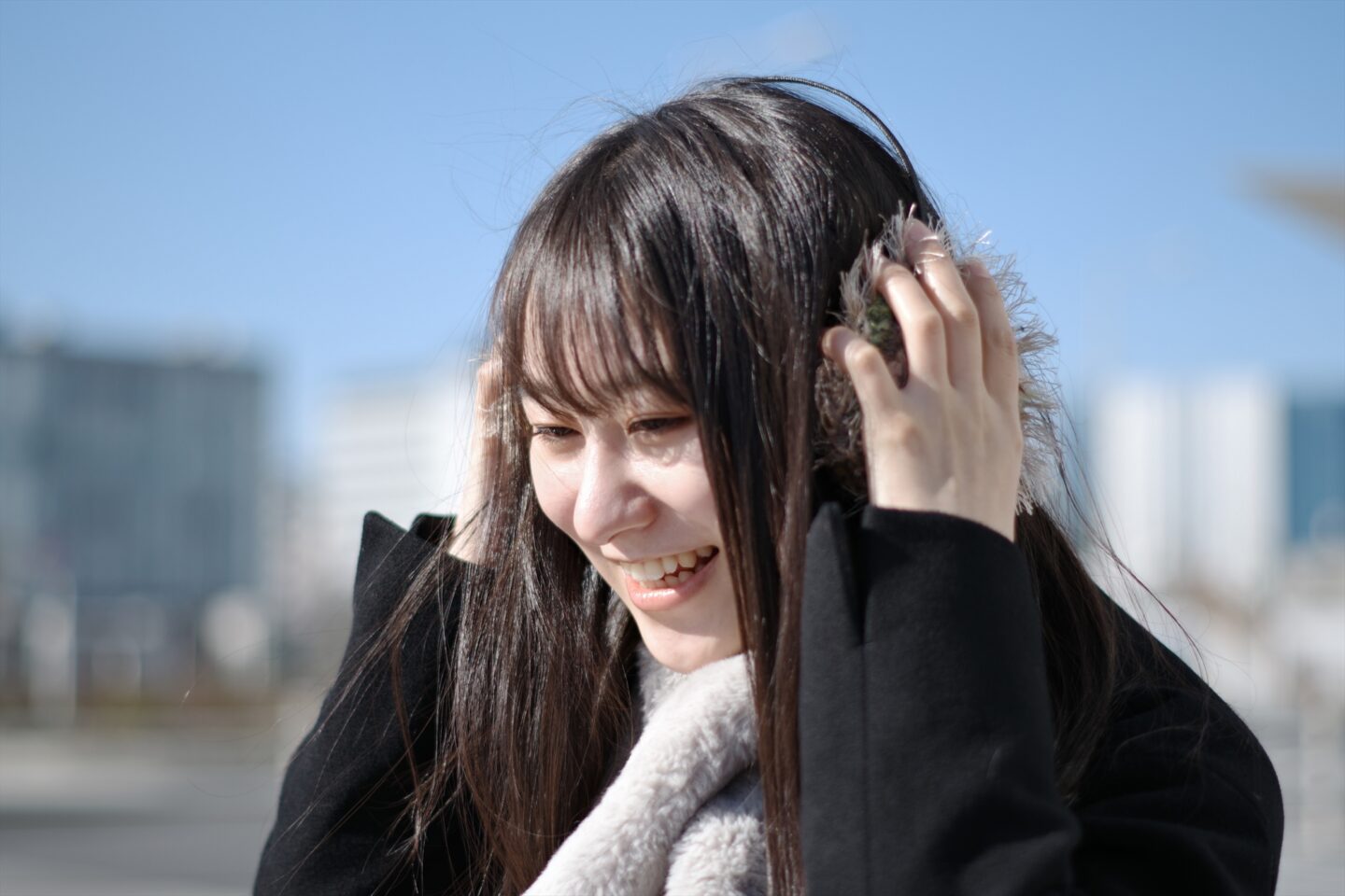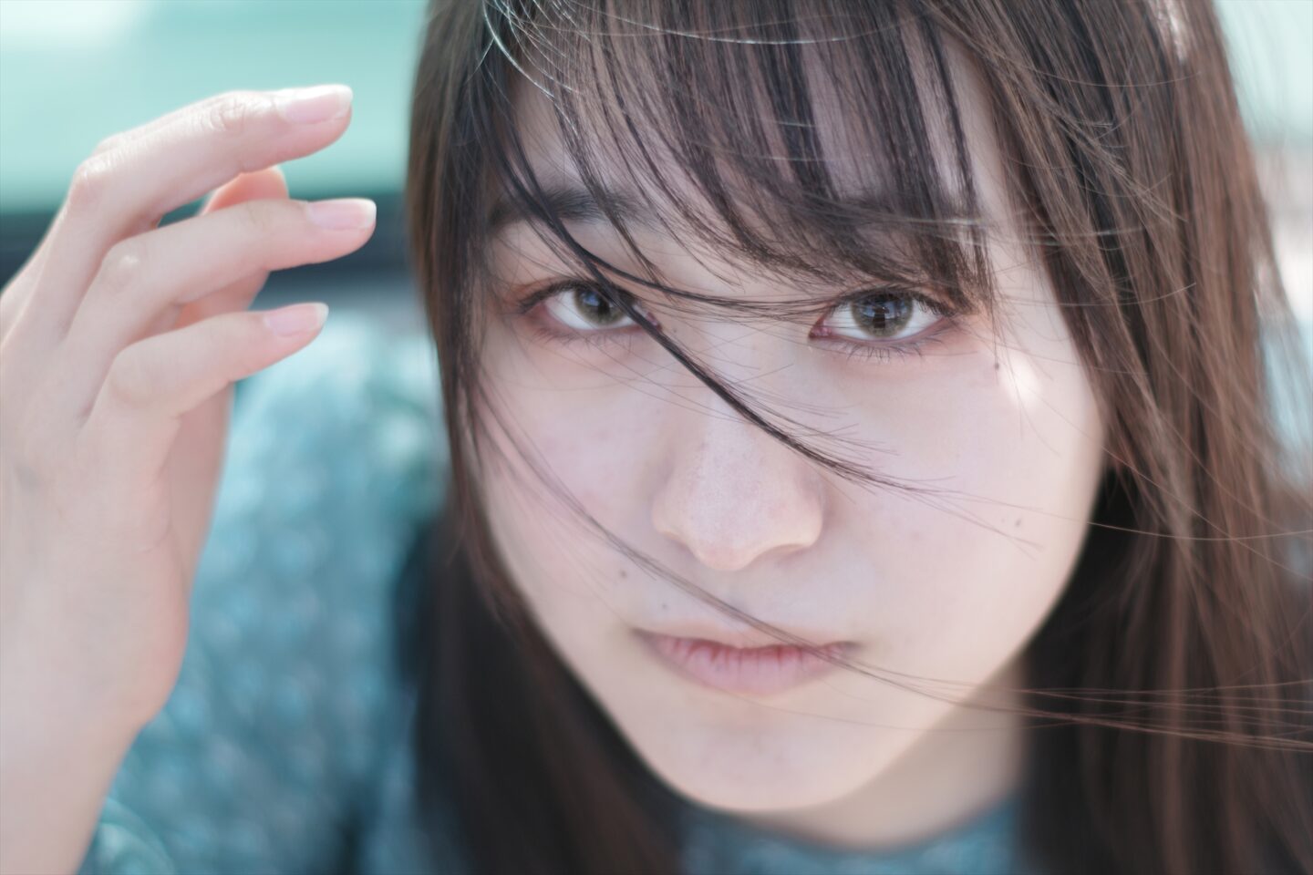 瞳の中にまでしっかりと合焦し、カメラマンである私自身がハッキリと写り込みました。あごのラインにはソフトフォーカスをかけたような柔らかいボケが感じられ、細い髪の一本、一本まで繊細な描写をしながらも、肌のトーンにはしっとりとした雰囲気が感じられます。