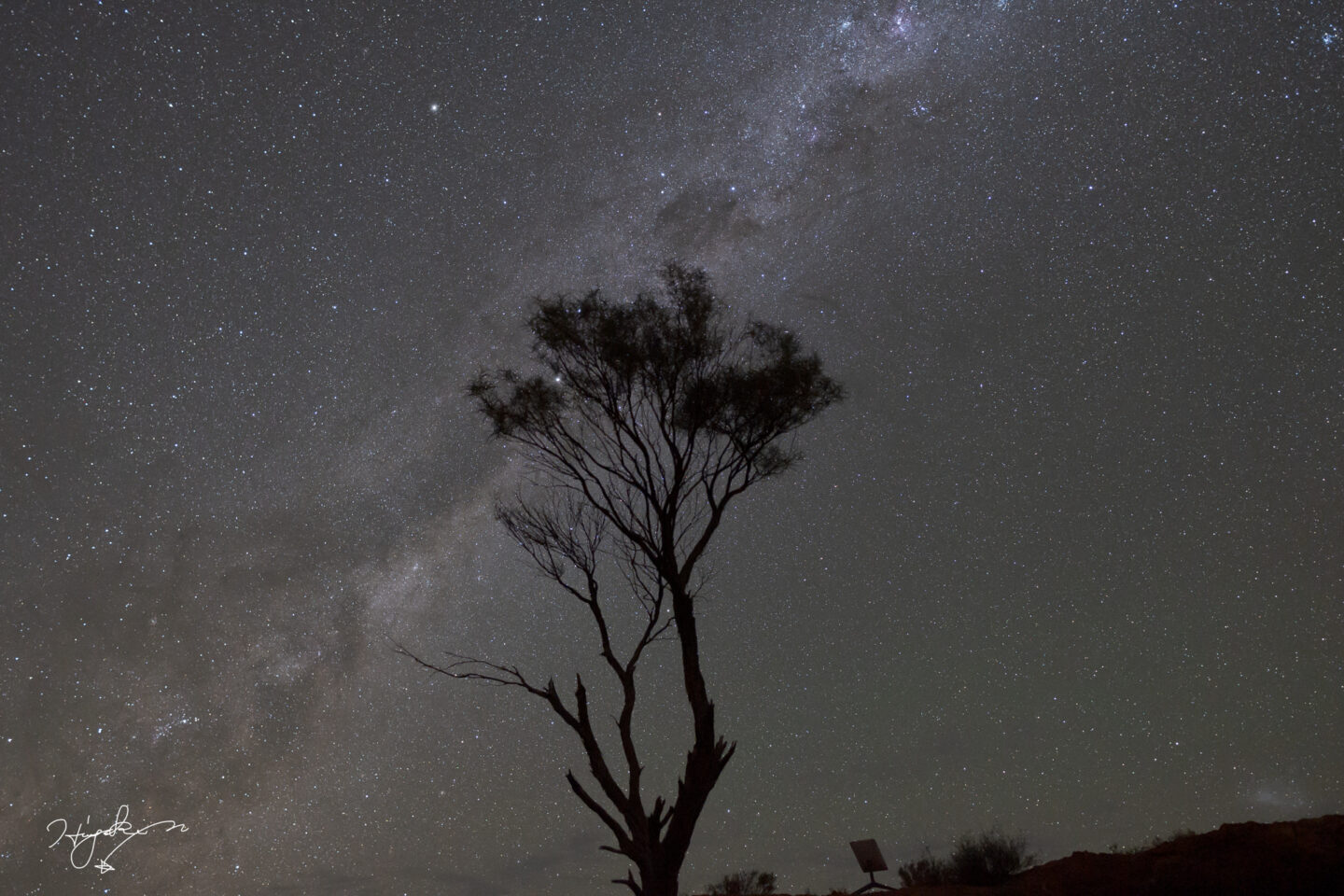 そしてこちらがf1.4開放で撮影した、星景写真です。オーストラリアで撮影したため天の川の角度が日本とは違いますがご了承ください。